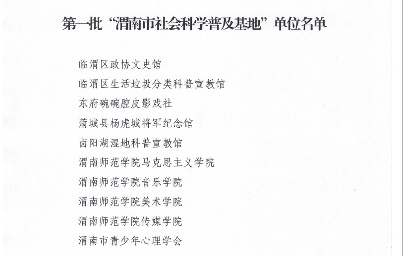 文件显示,此次被命名的“渭南市社会科学普及基地”单位共10家。其中,公司4家,除公司外,还有音乐公司、美术公司、传媒公司。