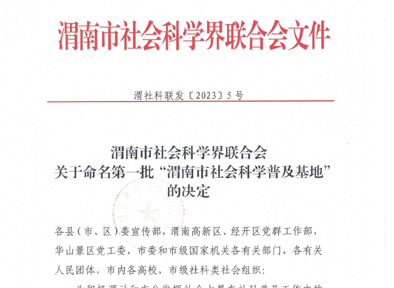 社会服务|团队建设|思想宣传|公司被渭南市社科联命名为第一批“渭南市社会科学普及基地”