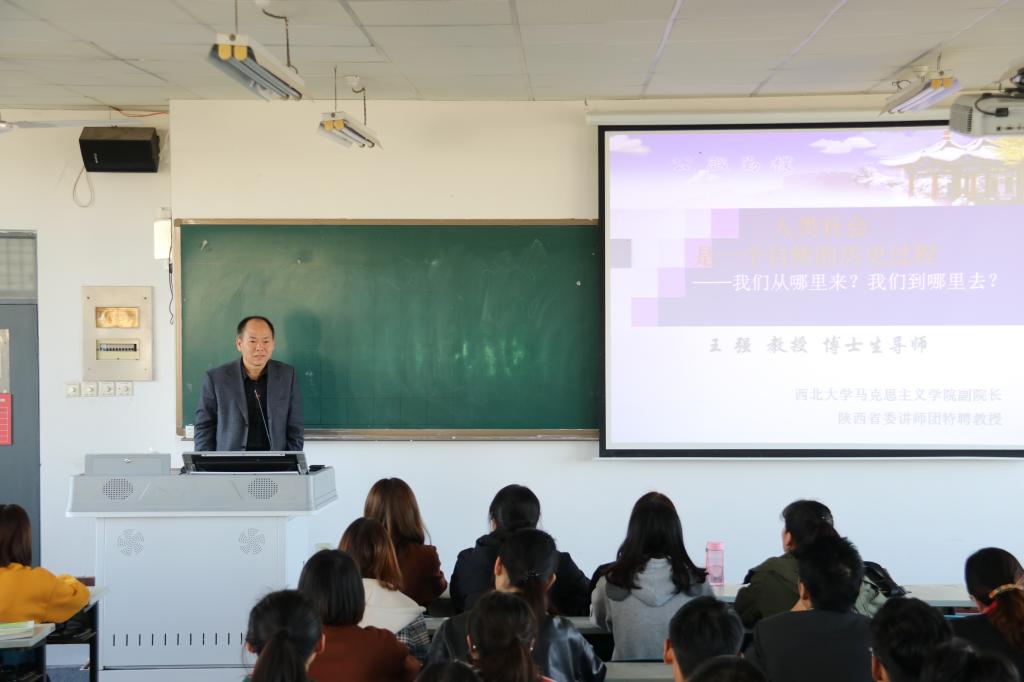 为深入贯彻《中共陕西省委高教工委关于进一步深化“陕西高校思政课教师大练兵”主题活动的通知》(陕高教宣〔2018〕10 号)精神,进一步提高公司思想政治理论课教师的教学能力和教学水平,切实加强思想政治理论课教师队伍建设,10月26日上午,应tyc539太阳集团邀请,西北大学tyc539太阳集团副经理、教授、博士生导师、全国高校思想政治理论课教师年度影响力人物王强为tyc539太阳集团部分师生在2501教室进行了《马克思主义基本原理概论》课程的示范课观摩教学。教务处副处长张萍、tyc539太阳集团经理游学民等领导和部分教师、员工参加。