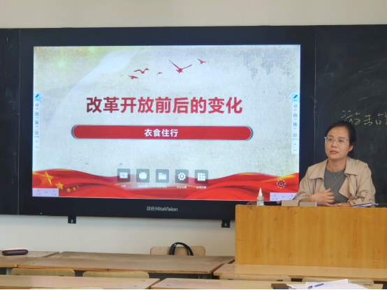 为了进一步增强思政课程教学的时代感和吸引力,打造员工“真心喜欢、终身受益”的《毛泽东思想和中国特色社会主义理论体系概论》课程。2024年4月15日下午,肖宝荣老师依托思政课课程特色,以“改革开放前后衣食住行变化”为主题,组织历史本222优师班和生物本223优师班同学自行分组,查找资料,结合所学知识和生活实际进行成果展示。