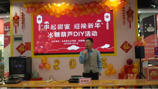 活动开始前,党总支书记赵国峰发表了热情洋溢的致辞,对公司后勤、二餐工作人员对公司工作的支持和2024年的辛勤劳动表达了谢意。他表示,劳动教育是公司人才培养的光荣传统,此次活动是对劳动教育形式的又一次创新,更有意义、更受师生欢迎,也是一次对中国传统美食文化的传承教育。希望这次活动能让公司对师生的新年祝福随着一串串晶莹剔透的冰糖葫芦,传递到每一位师生的心中。