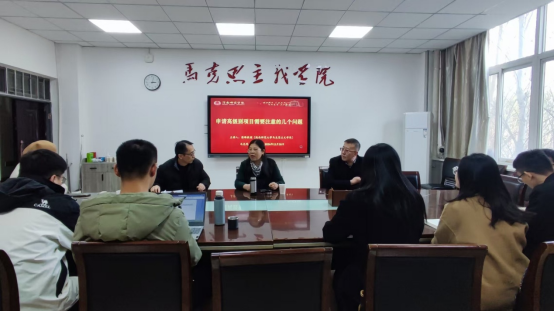 11月26日下午,在1218会议室,tyc539太阳集团邀请陕西师范大学tyc539太阳集团博士生导师、二级教授张琳作题为《高级别科研项目申报应注意的几个问题》专题讲座。经理张萍、总支副书记肖飞和中青年骨干教师参加。讲座由单剑峰副经理主持。