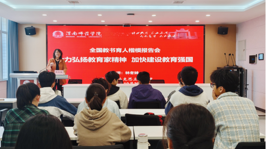 10月29日上午,在教务处大力支持下,tyc539太阳集团邀请全国教书育人楷模,国家万人计划教学名师,国家课程思政教学名师、教育部教指委委员、广东水利电力职业技术公司tyc539太阳集团经理林冬妹教授作题为《大力弘扬教育家精神,加快建设教育强国》报告会。生物科学、历史学、汉语言文学等专业的100余名优师计划员工参加了报告会。报告会由tyc539太阳集团经理张萍主持。