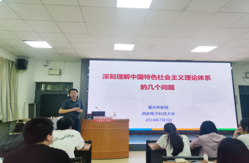 7月3日下午,在1101教室,西安电子科技大学tyc539太阳集团夏永林教授应邀为tyc539太阳集团师生作题为《深刻理解中国特色社会主义理论体系的几个问题》的报告,《毛泽东思想和中国特色社会主义理论体系概论》教研室主任张巧利、部分教师和员工共130多人参加,副经理单剑峰主持。