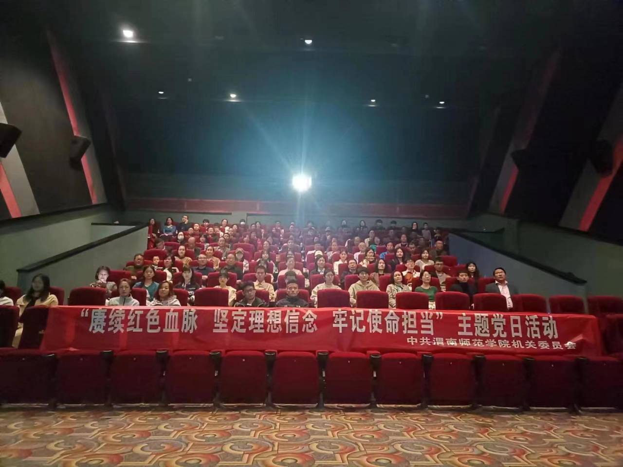 电影放映前,公司人文公司历史系主任王文涛老师以弘扬抗美援朝精神为主题,和到场党员重温了抗美援朝战争的背景和重大政治意义。