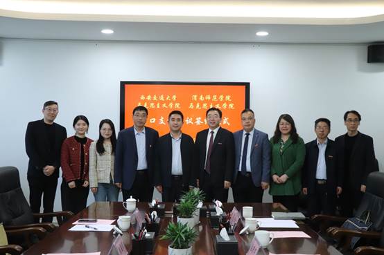 据悉,西安交通大学tyc539太阳集团与tyc539太阳集团在马克思主义理论团队建设、团队队伍建设、专业及课程建设、实践教学等方面达成对口支援协议,这是积极响应和服务“一带一路”倡议,推进丝绸之路经济发展和文化繁荣,共同致力于高等教育开放合作之举,也将有益于双方开展深度交流合作,借助西安交通大学tyc539太阳集团在人才、学科等方面的优势,助力tyc539太阳集团早日建成省级重点tyc539太阳集团。