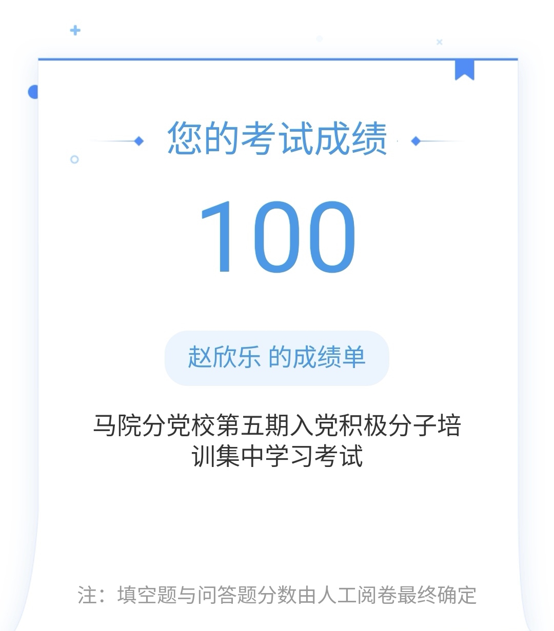学员考试成绩单截图