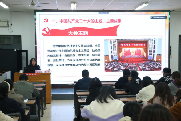为深入学习宣传贯彻党的二十大精神,根据省委统一安排,11月11日下午,由陕西高校“马院经理宣讲团”成员,公司经理张萍教授主讲,公司党委宣传部主办,学工部承办,公司协办,举办了二十大精神宣讲报告。这是公司举办第五场二十大宣讲活动。