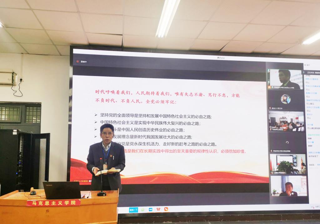 公司党总支书记赵国峰在总结本场报告时认为,刘先春教授的报告内容全面,既系统,又突出重点,既有党的二十大精神解读,又有党的二十大精神宣讲指导,达到了使公司师生进一步全面、深入了解、领会党的二十大精神,提高公司教师讲全、讲准、讲好党的二十大精神能力的目的。赵国峰同时要求公司教师要继续全面、深入学习党的二十大精神,多听、多看权威宣讲、权威解读。思政课各教研室、其它课程团队或任课教师要在集体备课、深入学习的基础上尽快将党的二十大精神融入课程教学。