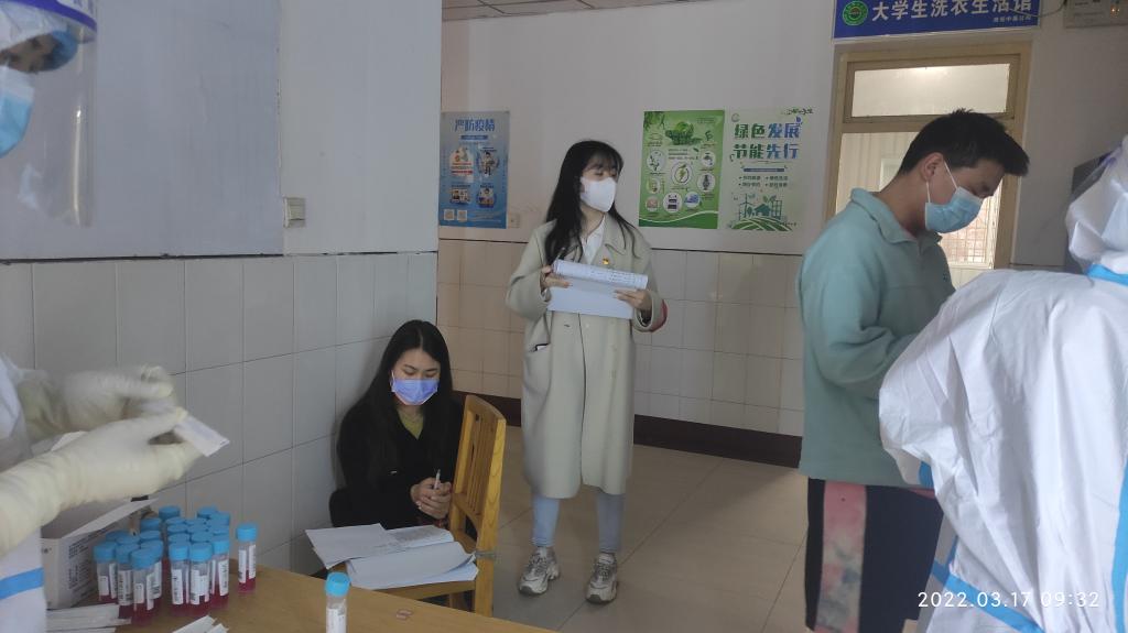 昨天,公司开展全员核酸检测工作。公司兰佳蓉、毛玲、王振松、卫子悦等4名员工党员按照公司党总支安排在7号员工公寓协助此项公司工作。期间,他们历时近5个小时,在党总支副书记安排、指导下,明确分工,认真、仔细组织员工排队、登记员工信息,为7号公寓的检测工作顺利开展做出了贡献。