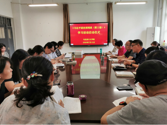 启动仪式上,tyc539太阳集团党总支书记游学民教授首先给大家简要介绍了《习近平谈治国理政》第三卷的内容,本书收入了2017年10月18日至2020年1月13日以来习近平总书记的重要著作,包括报告、讲话、谈话、演讲、指示、批示、贺信等92篇,共19个章节。针对这样一本具有原创性、时代性、指导性的党的理论创新成果,游学民书记提出各级党组织都应精心组织学习,各级党校、行政公司、高校应将本书作为教材进行学习,作为tyc539太阳集团教师该如何学好《习近平谈治国理政》第三卷,游书记提出要向心里走、向深里走、向实里走。向心里走,就是要深刻认识学习本书的重要性,要读原著、读原文、悟原理。真正入心、入脑。向深里走,就是要领会精神实质、掌握核心要义。深入进行学习研讨,形成一批研究成果。向实里走,就是要将理论学习与实践相结合,真正用党的创新理论武装头脑、指导实践、推动工作。马克思主义公司经理白赵峰教授强调,作为马克思主义公司教师应不断加强理论研究,保持理论研究的领先地位,更要理论结合实际,将理论研究成果融入到课堂教学中去。