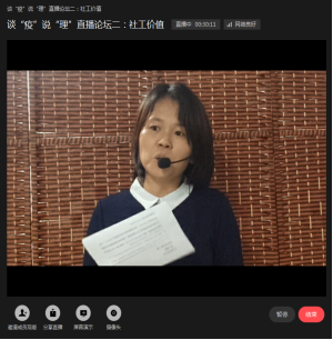 孙晓珍副教授首先从什么是社会工作入手,结合习近平总书记和民政部对社工的定位和指示、社工专业的特点和功能等方面,向师生详细介绍了社会工作的专业优势、性质以及内容等知识;其次,从社会工作与战“役”角度,重点讲述了社会工作者在疫情防控中扮演的角色。作为从事专门性社会服务的专业人员,一方面在线上开展疫情防控宣传教育和提供危机干预、社会心理疏导、情绪支持、保障支持等服务;另一方面配合街镇和社区,开展联防联控、组织志愿服务、健康教育和资源整合、提供政策解读和信息咨询、困难人群防疫援助和生活救助以及资源链接等服务;最后,从保护生命原则、差别平等原则、生活品质原则、最小伤害原则四个层面,分析了疫情防控下的社会工作伦理价值。