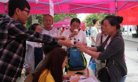 第三,在报道的当天,为了关怀千里迢迢护送子女到校报到的家长们,公司在报名点附近都设立了家长的休息区,并且有专人为家长提供饮水服务,辅导员和志愿者们都主动上前迎接,亲切交流,为家长们耐心的解答问题。