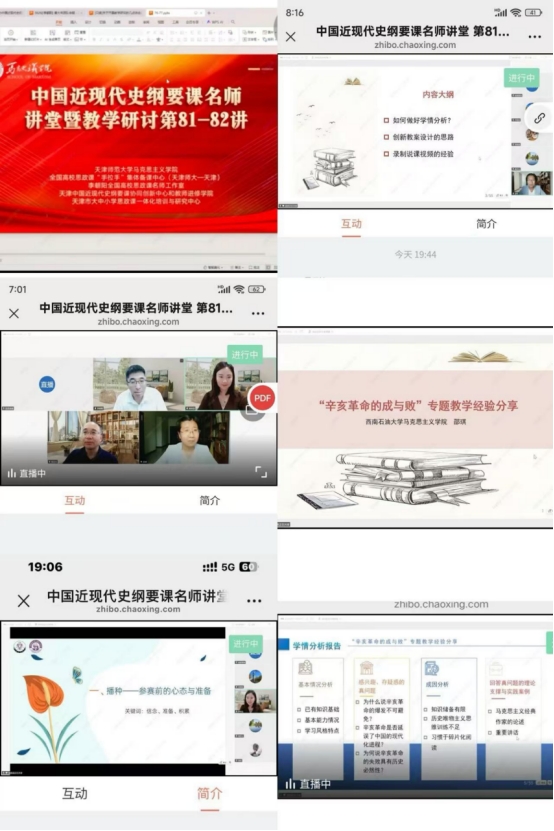 6月25日晚,由天津师范大学tyc539太阳集团、全国高校思政课“手拉手”集体备课中心、李朝阳全国高校思政课名师工作室、天津中国近现代史纲要课协同创新中心和教师进修公司等部门、联合举办的中国近现代史纲要课名师讲堂暨教学研讨第81-82讲在线上举行。tyc539太阳集团《中国近现代史纲要》教研室组织教师线下、线上结合的方式参与备课学习。