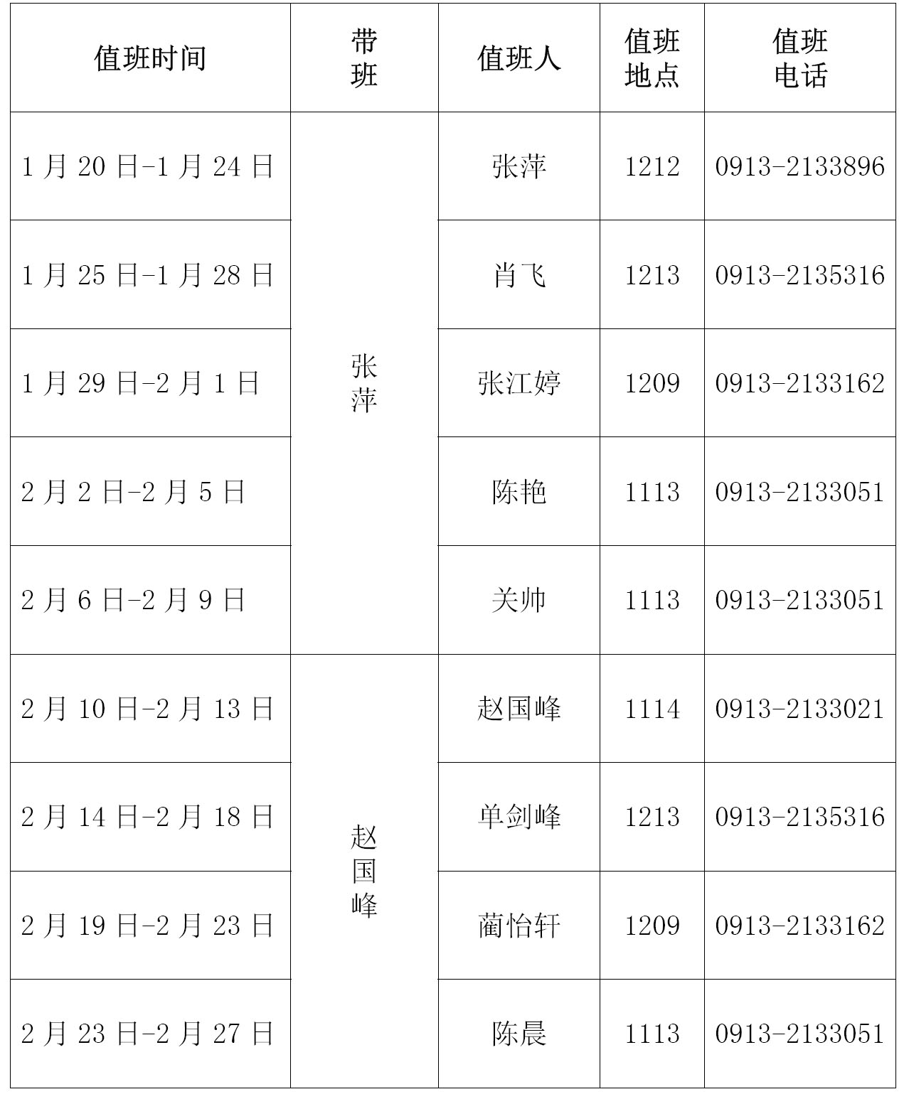 按照公司安排,2024年1月20日至2月27日,教职工寒假轮休。期间,tyc539太阳集团固定上班(值班)安排如下,校内师生、单位办事,校外群众、单位办事,请联系值班人员或到值班处。其他人员上班按工作需要和公司安排办。
