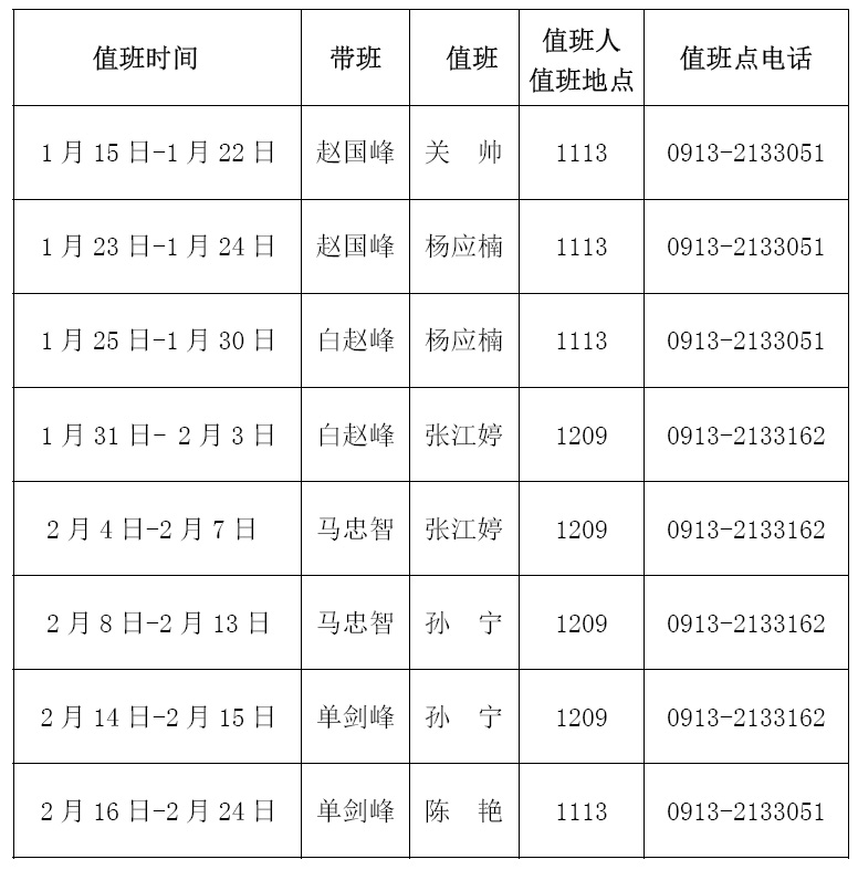 按照公司安排,2022年1月15日起,公司放寒假,收假时间待定。假期,公司安排专人值班,处理假期事务。校内师生、单位办事,校外群众、单位办事,请联系值班人员或到值班处。