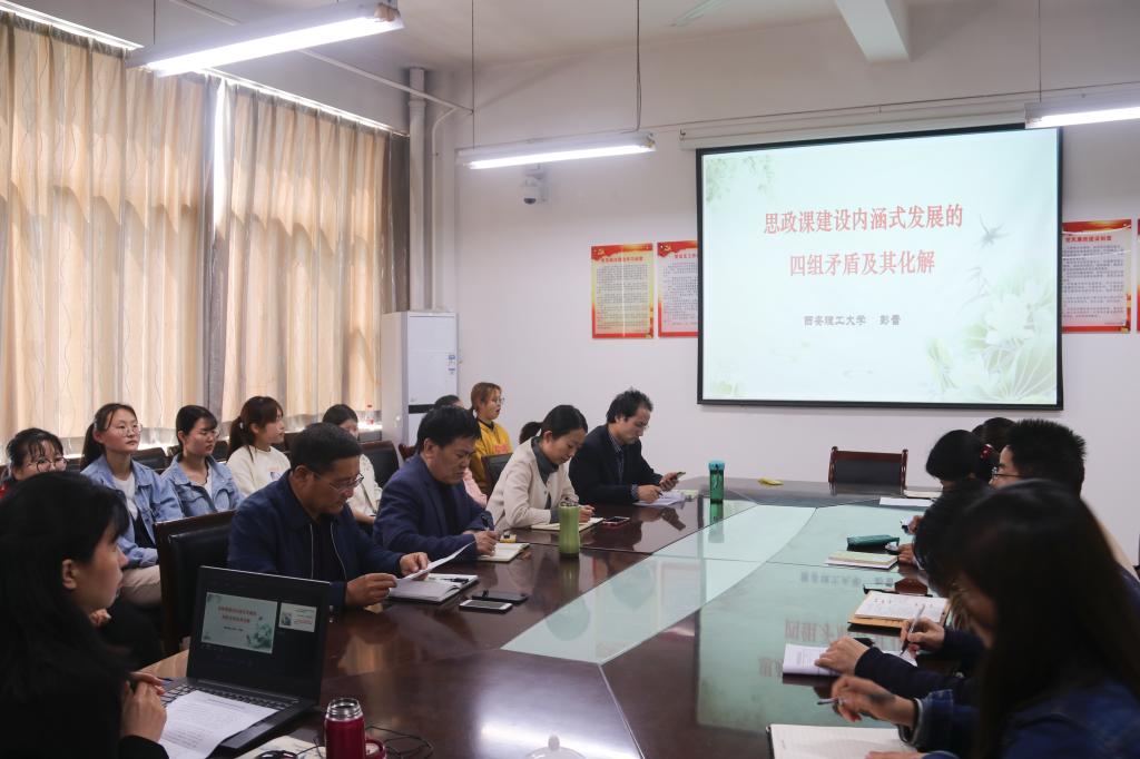 4月12日下午,2018年“陕西思政课大练兵教学标兵”获得者——西安理工大学彭蕾副教授应tyc539太阳集团之邀做了题为《思政课建设内涵式发展的四组矛盾及其化解》主题报告。